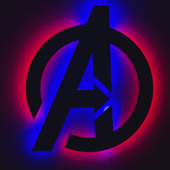 Bring action and color to your room with this eye-catching Avengers RGB LED wall art sign. Perfect for superhero fans of all ages, this laser-cut metal sign features the iconic Avengers Assemble logo and dynamic LED lighting in customizable RGB colors—Red, Green, and Blue.