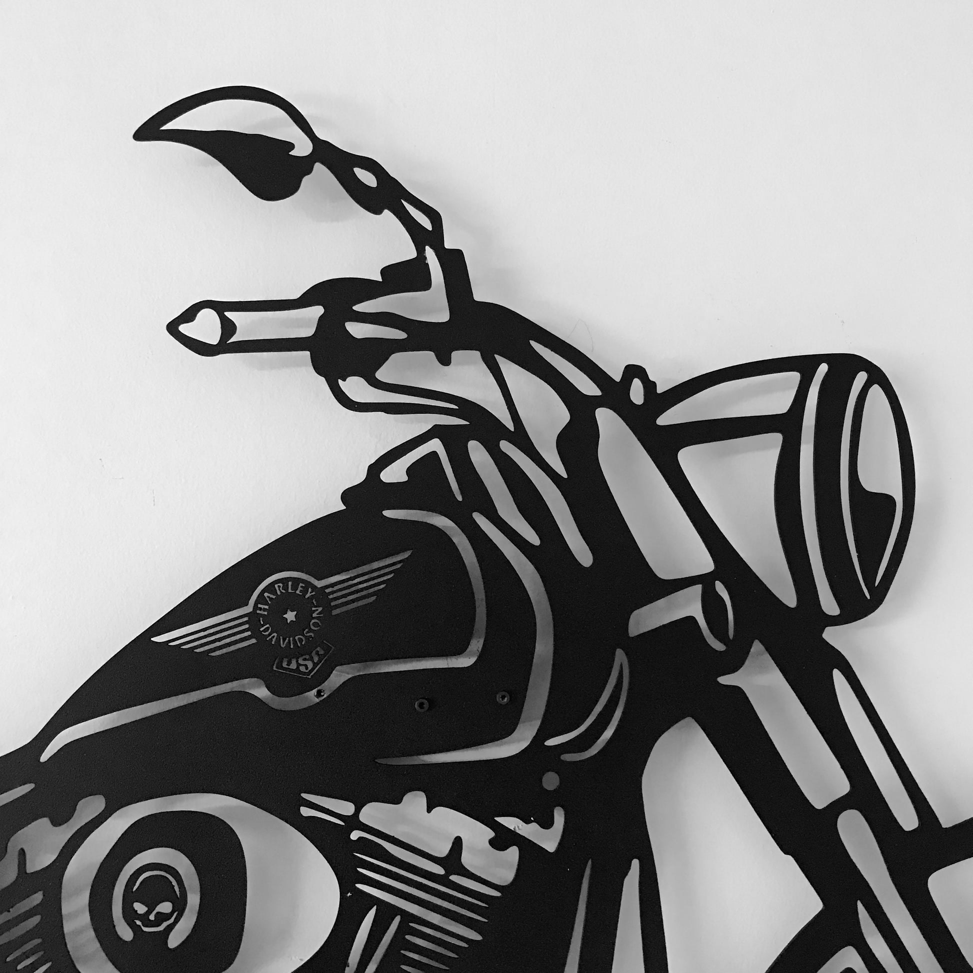 Set a low-slung, heavyweight vibe with motorcycle wall art—a laser-cut Fat Boy–style silhouette finished in deep matte black. Clean yet imposing, it anchors garages, studios, offices, and covered outdoor areas. (Not affiliated with or endorsed by any motorcycle brand.)